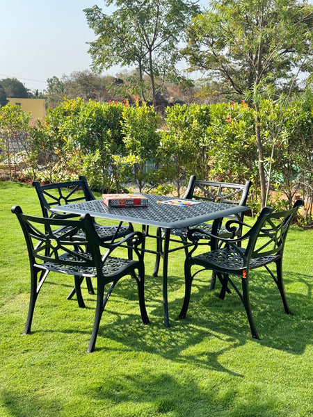 Vega Diamond Aluminium Square Table with 4Chairs (Set of 5)